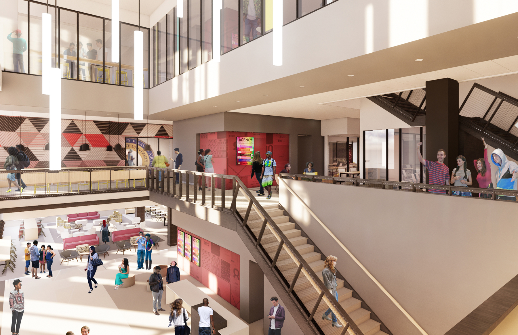 Market Wednesday, Oglesby Union’s weekly signature event, will be relocated to a new plaza at the front entrance. The famed Crenshaw Lanes and Club Downunder will be located in the lower recreation floor.